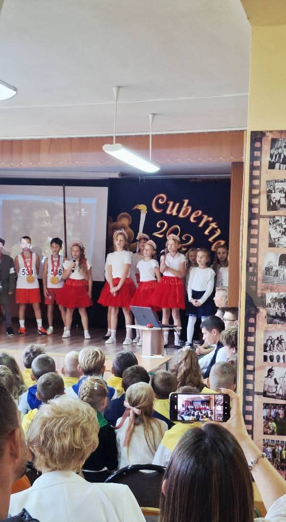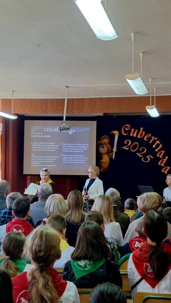21 X 2025 r. po raz dwunasty obchodziliśmy Święto Patronów Szkoły – Polskich Olimpijczyków. W ramach wydarzenia zorganizowaliśmy Coubertiadę, podczas której sprawdzaliśmy wiedzę uczniów na temat igrzysk olimpijskich w Moskwie (1980). Całe wydarzenie poprowadziła Pani Joanna Noga. W tegorocznej edycji najwyższy wynik uzyskała drużyna uczniów, której przyznano puchar Burmistrza oraz przekazano gratulacje od polskich olimpijczyków obecnych na uroczystości. 🏆Program obchodów wzbogacił spektakl przygotowany przez uczniów klas 3 i 4 pod opieką pani Katarzyny Szczerby. Występ spotkał się z dużym uznaniem publiczności i stanowił doskonałe uzupełnienie sportowej części wydarzenia. 🎭Podczas uroczystości przekazano również podziękowania panu Jerzemu Garpielowi za podarowane książki o tematyce sportowej oraz panu Boguchwałowi Fularze za oryginalną maskotkę z Moskwy – Miszkę, która wzbudziła wiele pozytywnych emocji.