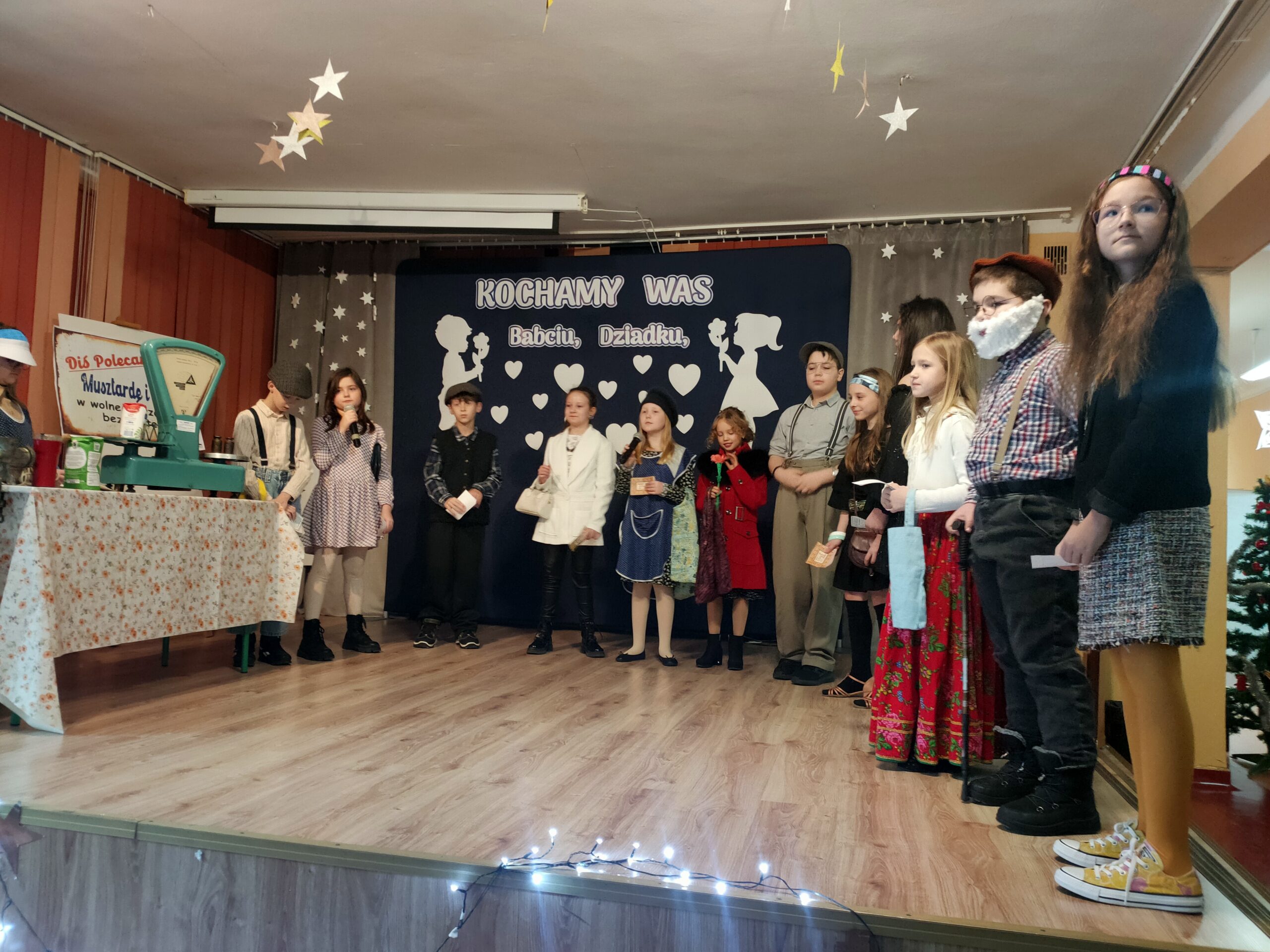 Zwieńczeniem uroczystości było przedstawienie w reżyserii p. Katarzyny Szczerby i wystawione przez klasę trzecią, które przeniosło widzów w czasy PRL-u. Młodzi aktorzy z humorem i zaangażowaniem zaprezentowali realia dawnych lat, budząc zarówno śmiech, jak i sentymentalne wspomnienia.Cała uroczystość przebiegała w serdecznej, rodzinnej atmosferze i na długo pozostanie w pamięci wszystkich uczestników.